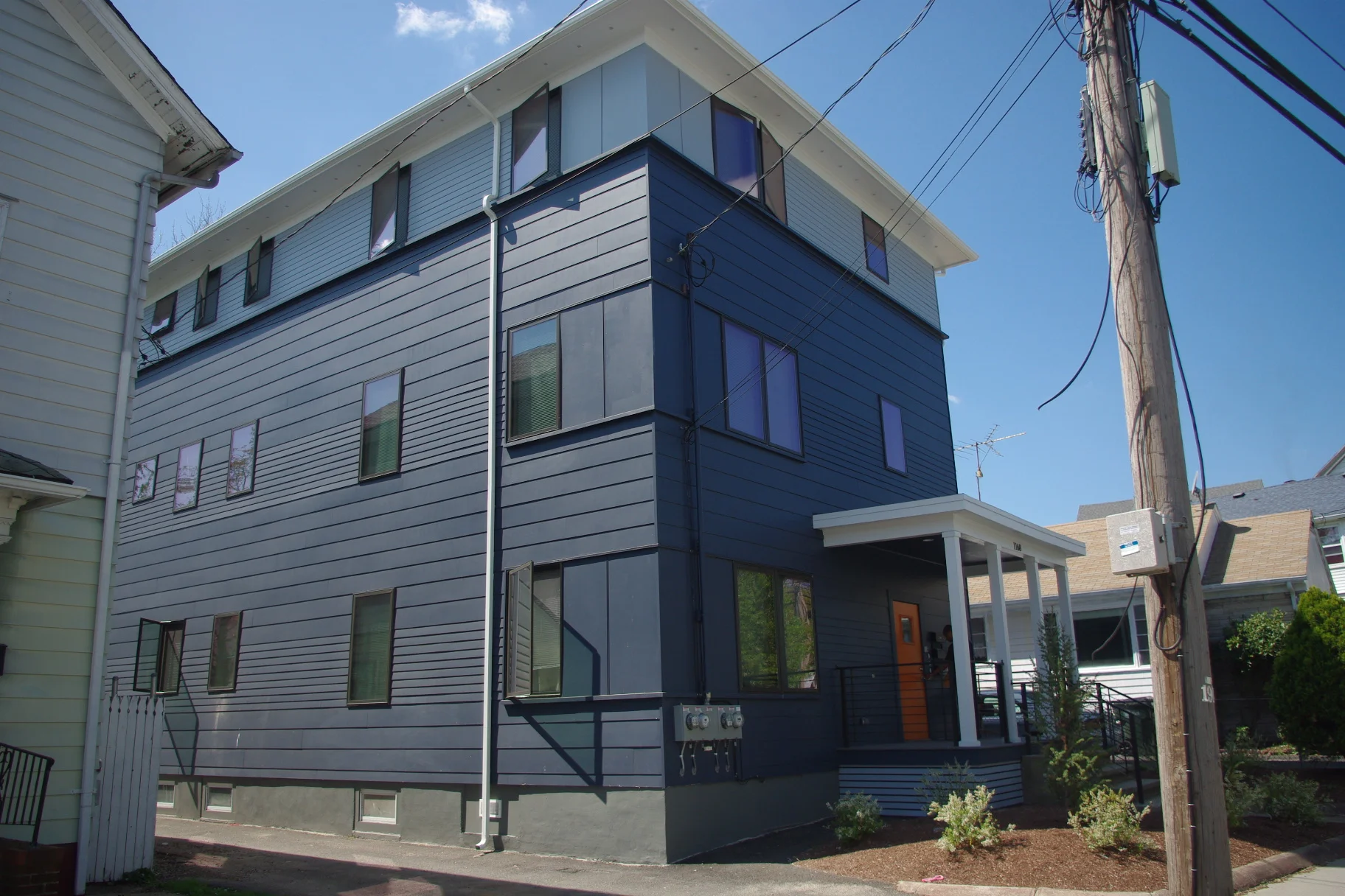 This was our first mill building renovation, but also our biggest to date: 63,000 SF in 6 buildings, this complex was built in 1866, and bought by 4 artists in who managed to secure funding from a number of sources including the Providence Revolving Fund to renovate the building into 39 artist-only live-work condominiums. It took 3 phases over 5 years and plenty of sweat equity but this courageous crew managed to develop one very creative community that still thrives today.